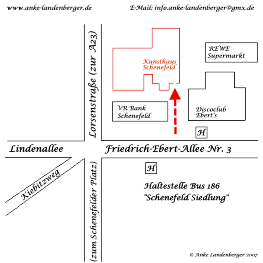 Bus 186 bis "Schenefeld Siedlung" oder Bus 285 bis "Stadtzentrum Schenefeld" Hier können Sie mir eine E-Mail schicken: